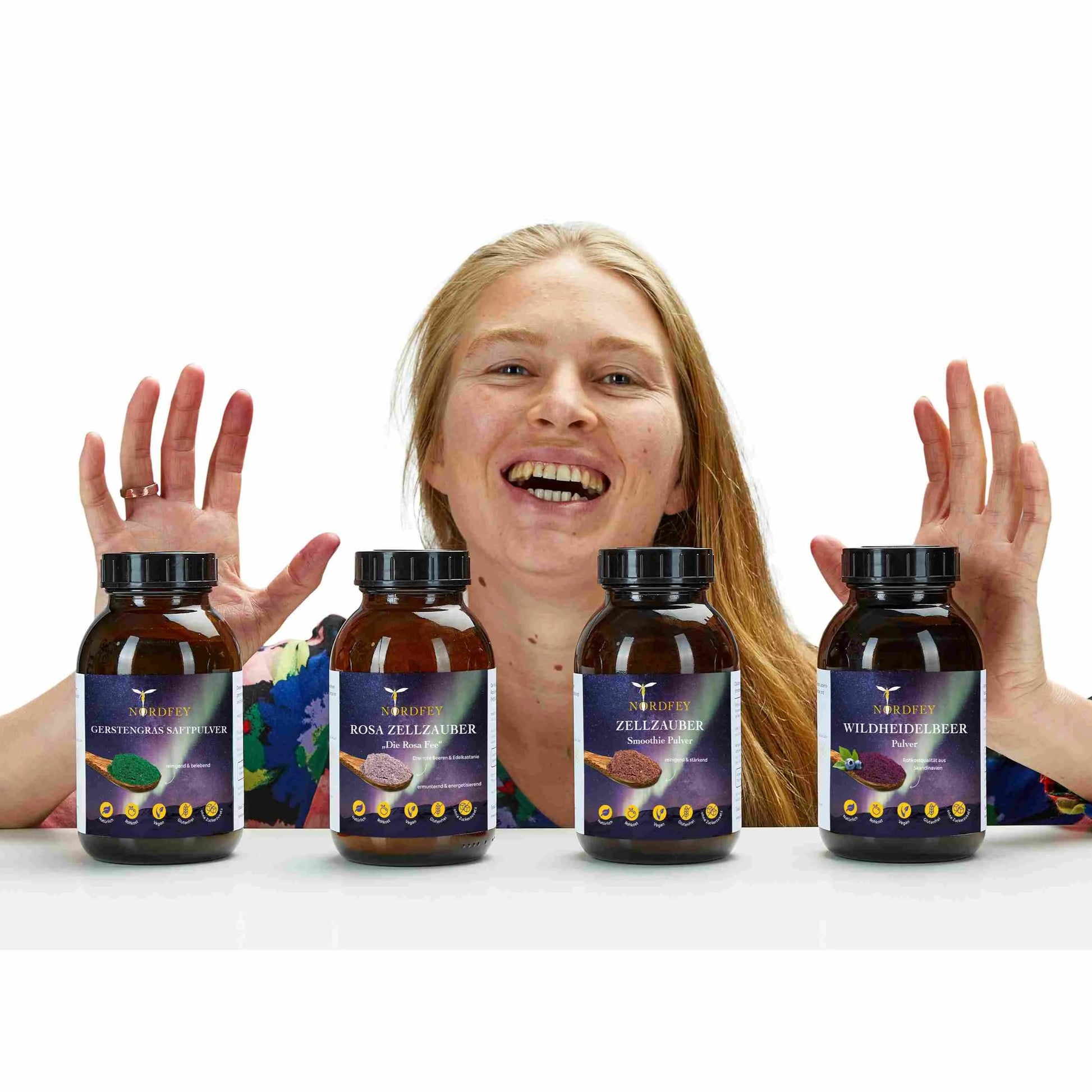 Zum Frühstück ein großes Glas mit Zellzauber Smoothie, oder rosa Zellzauber Beerensmoothie oder in Abwechslung mal einen grünen Smoothie mit Gerstengrassafpulver das man z.B. mit süßen Früchten mixen kann, z.B. Aprikosen, Äpfeln, Birnen oder auch mit vorab eingeweichten getrockneten Feigen. Wer nach dem Smoothie noch “mehr” braucht ist mit einem vollwertigen Müsli sehr gut umsorgt!